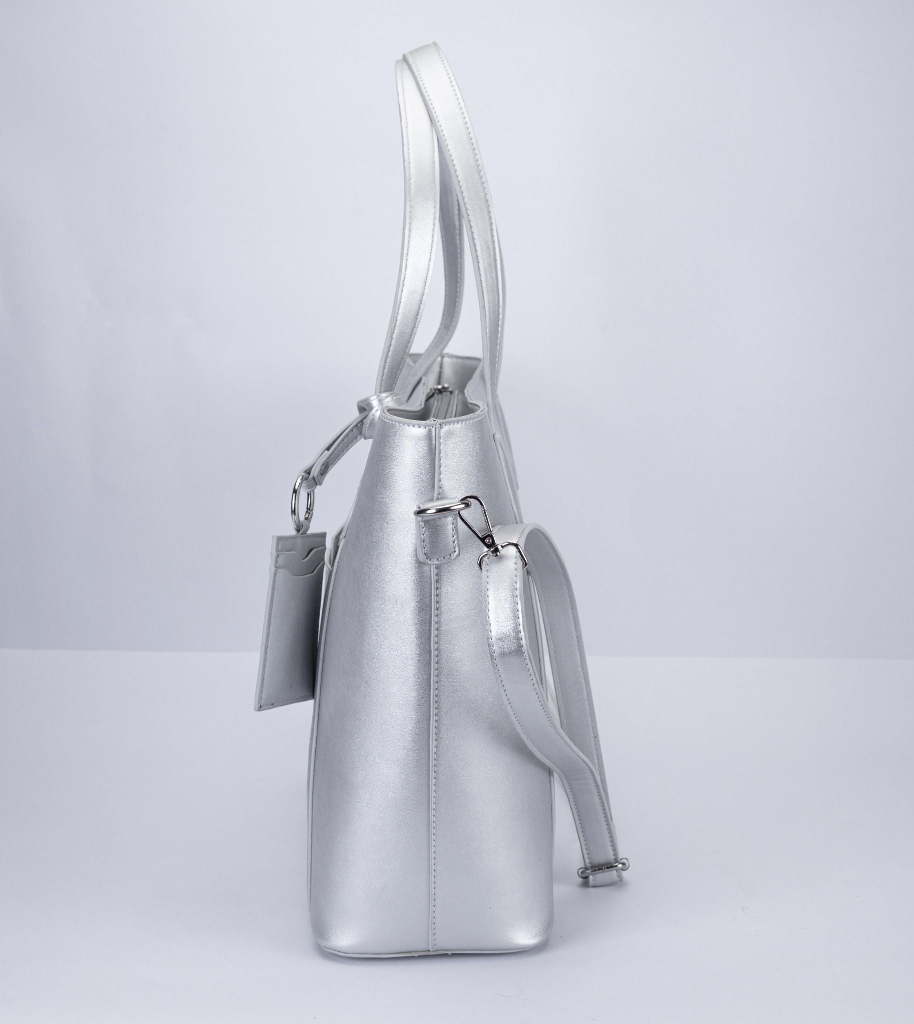 Stay organized in style with this spacious tote bag, crafted from high-quality faux leather. It features double shoulder straps, a detachable cross-body strap, and a smart exterior card holder. The interior is designed with multiple pockets and compartments to keep your essentials neat and accessible — perfect for work, travel, or everyday outings.